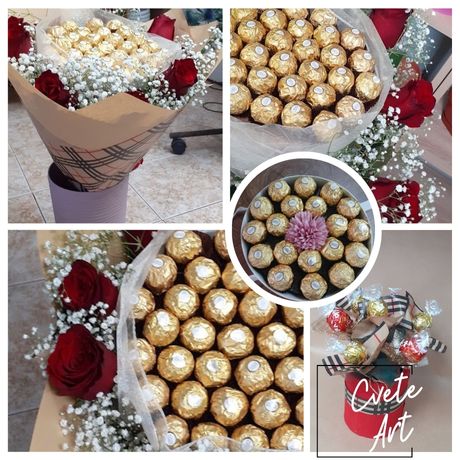 Уникална комбинация от нежност и вкус – нашите букети съчетават изяществото на ръчно изработени цветя с апетитната сладост на бонбони. Перфектни за подарък, изненада или специален повод, те носят радост, стил и лично послание. Всеки букет може да бъде персонализиран според предпочитанията – цветове, видове бонбони, послание или тематична декорация. За рожден ден, сватба, кръщене или просто за да зарадваш някого – това е подарък, който не се забравя.