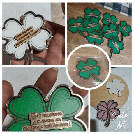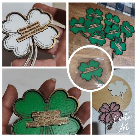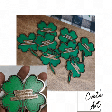 Символ на късмет, надежда и позитивна енергия – нашите детелини са перфектното допълнение към всеки подарък. Предлагаме ги като мини сувенири, магнити или декорации, които носят усмивка и топло послание. Изработени с внимание към детайла и възможност за персонализация – име, дата или кратко пожелание – те са идеални за сватби, кръщенета, абитуриентски балове или просто като мил жест към любим човек. Закачени на хладилника или поднесени в плик, детелините напомнят, че доброто винаги е наблизо.