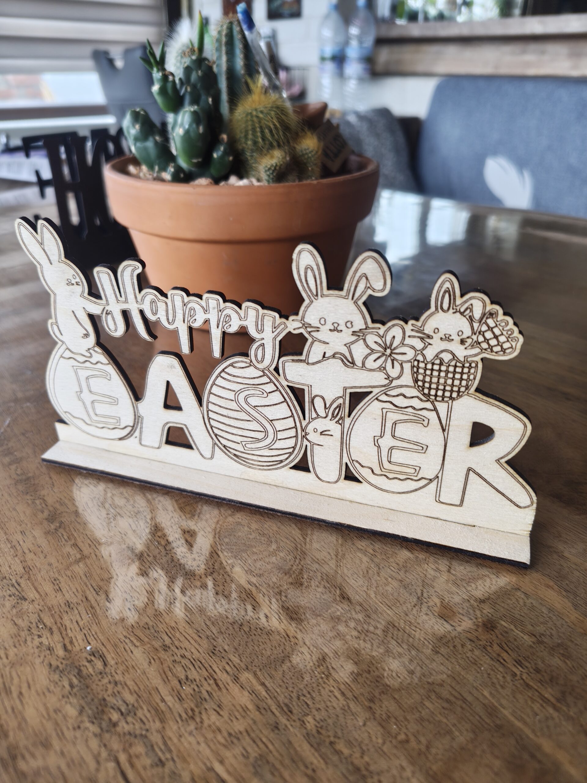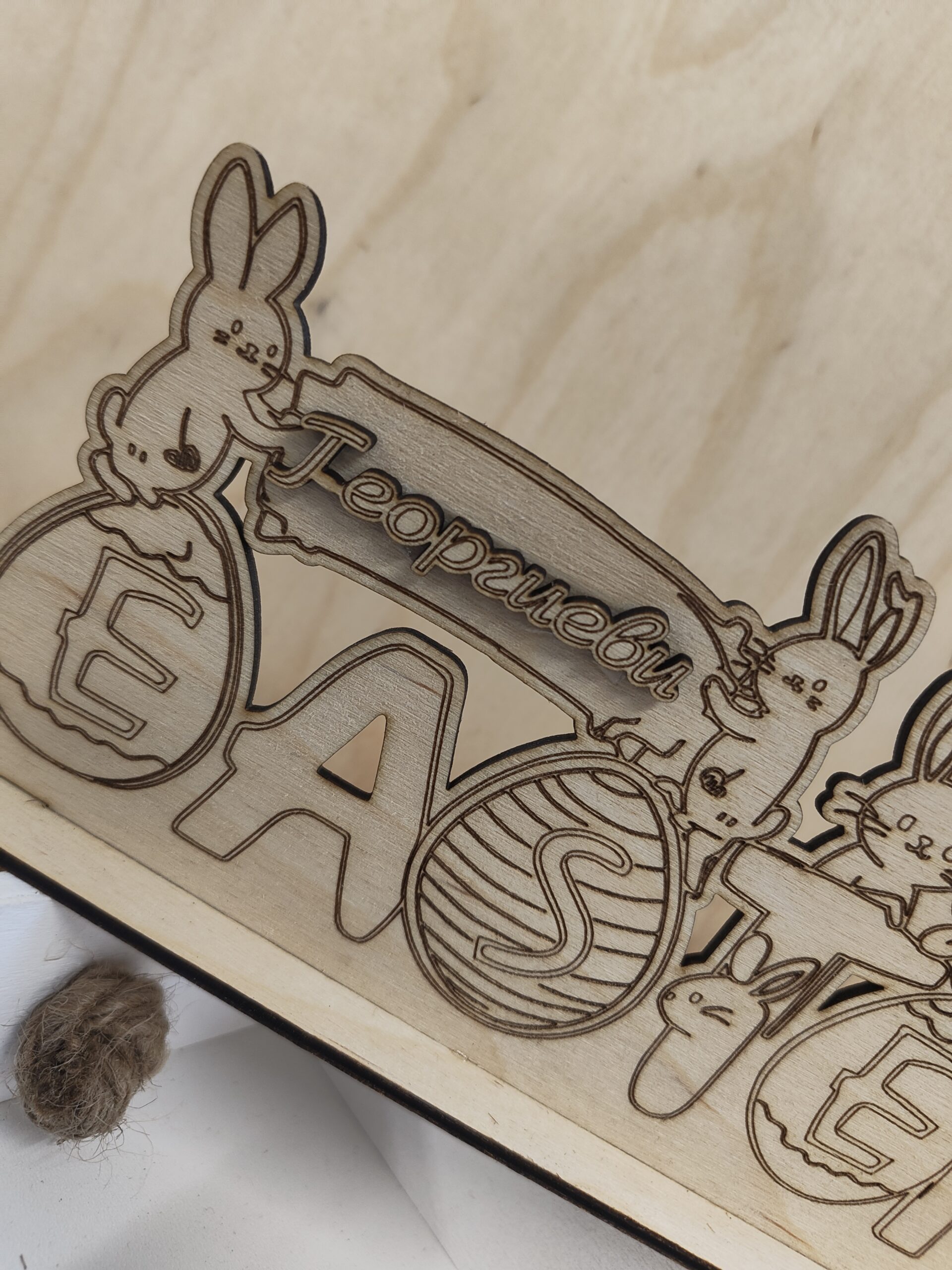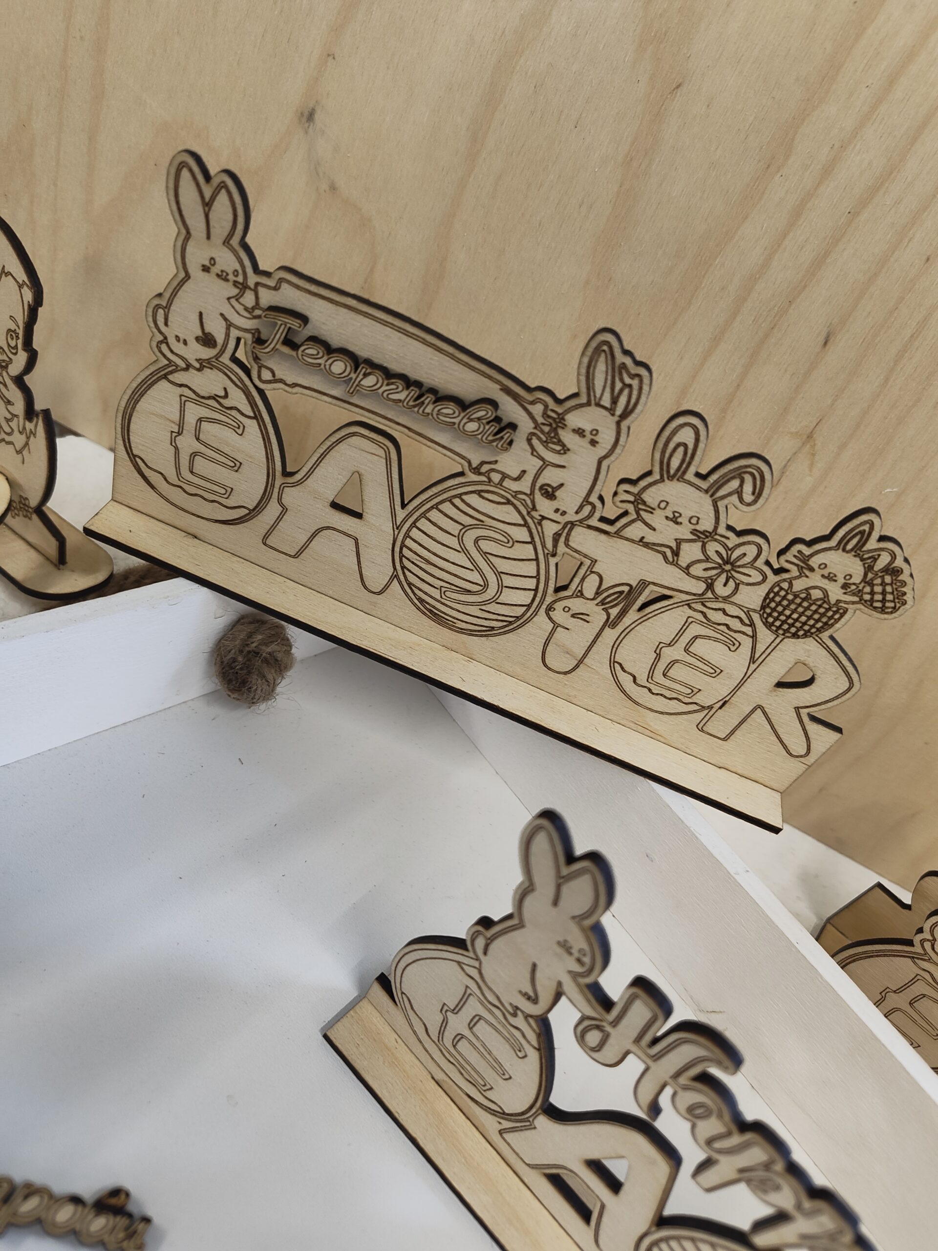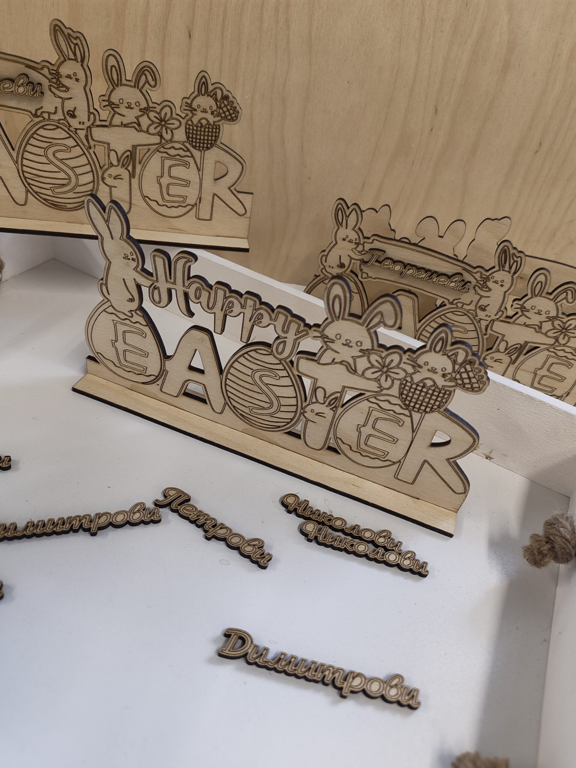 ✨ Модел 1 – със зайчета Весел дизайн с лазерно гравирани зайчета, яйца и цветя. Игрив и празничен акцент.