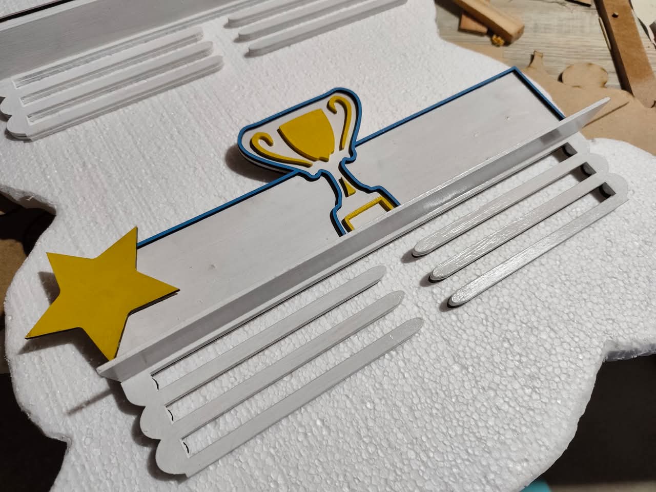 Създадена за шампиони, мечтатели и упорити души – нашата закачалка за медали е не просто аксесоар, а символ на усилия, успех и вдъхновение. Изработена от висококачествено дърво или MDF, с възможност за персонализиране – име, спорт, мотивационно послание или дори лого – тя превръща всяка стена в галерия на лични победи. Подходяща за деца, спортисти, танцьори или всеки, който иска да покаже с гордост своя път към успеха.